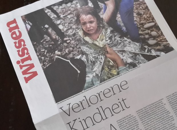 Es ist eines der vielen Bilder, die man zurzeit häufig in den Medien zu sehen bekommt. Es ist eines dieser vielen Bilder zur Flüchtlingskrise, die mich schokieren. Es ist eines unter vielen, doch der Blick dieses Mädchens hat mich besonders ins Herz getroffen. Der dazugehörige Beitrag dreht sich um die verlorene Kindheit der Flüchtlingskinder und wirft die Frage auf, wie sich die belastenden und teilweise gewaltvollen Grenzerfahrungen auf die Psyche und Zukunft dieser Kinder auswirken wird. Und in Zeiten, in denen ich versuche, meinem eigenen Kind – so gut es geht – eine heile Welt zu präsentieren, frage ich mich, welchen Einfluss der neue Umgang mit Grenzen in Europa auf unsere Welt von morgen hat.